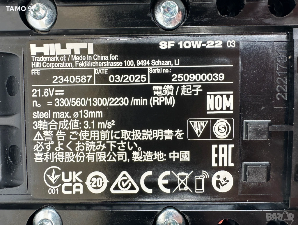 Марка и модел: Hilti SF 10W-22 ATC