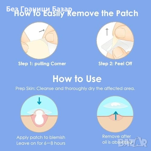 Лесно използване – почистете и подсушете, изрежете, залепете; сваля се след ~6 часа