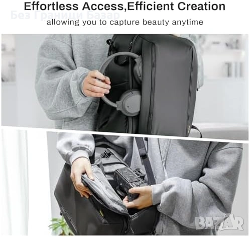 Фото раница с твърд корпус за сигурно носене на камера и оптика при пътуване и навън