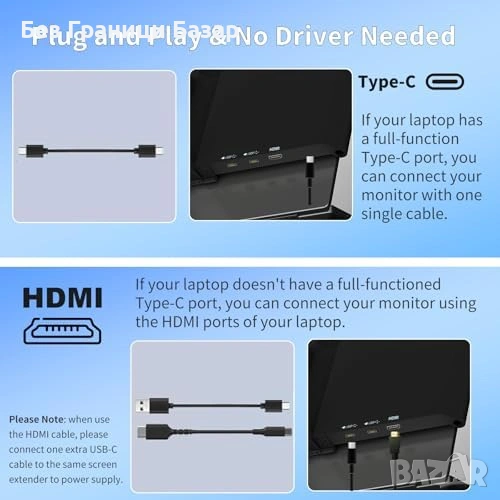 Опция за жична връзка: HDMI или Type-C (пълнофункционален)