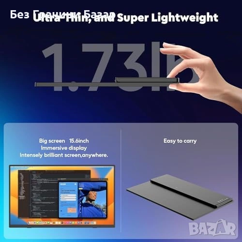 Нов 15.6" Безжичен преносим монитор с батерия 1080P IPS 60Hz, Втори екран