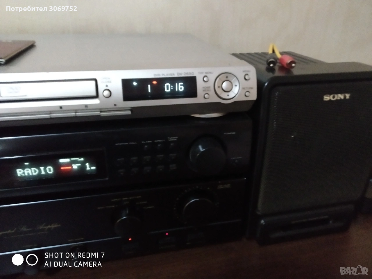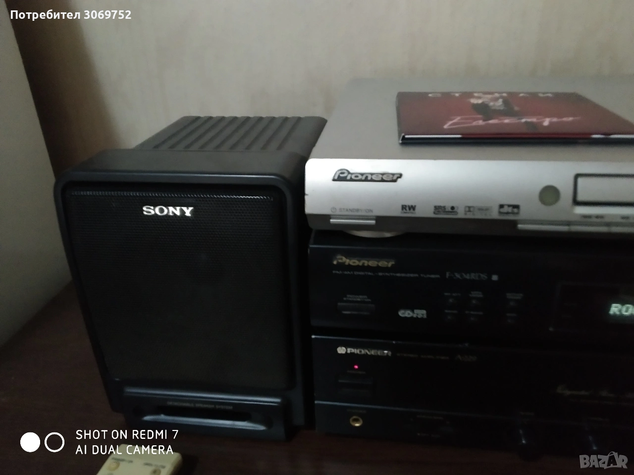 тунер ,усилвател и ДВД pioneer+ тонколони sony в цената...усилвател има още два свободни входа за грамофон и блутут кутийка за стрийм от телефон ... подходящ за гараж или вила ..