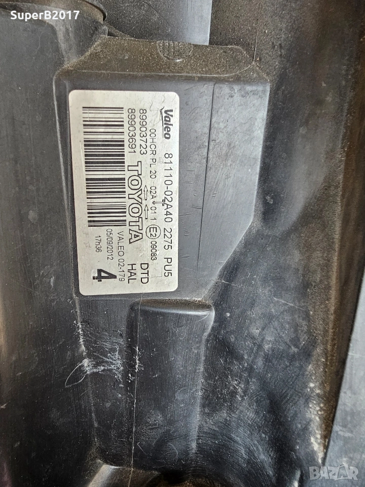 Продавам - оригинален десен фар за Тойота Аурис (Toyota Auris) 2012 г. Фара е със здраво стъкло и корпус. Като забележка има едно горно счупено краче (на снимките се вижда) и стъклото е пожълтяло има нужда от полиране. Всичко друго по фара е здраво и работи. Оригиналния номер е 8111002A40. Цена - 55 евро.