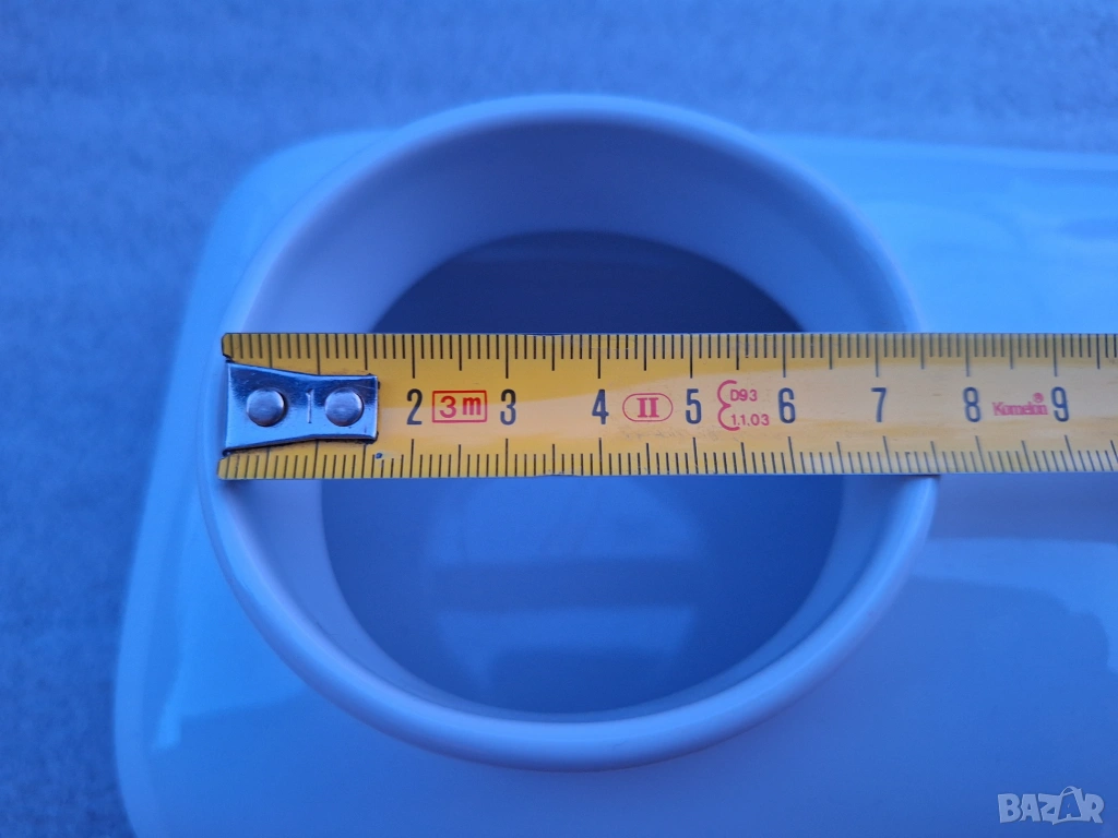 27 см. дължина, 13 см. ширина, 8 см. височина за саксийки с диаметър 5.5 – 6 см.