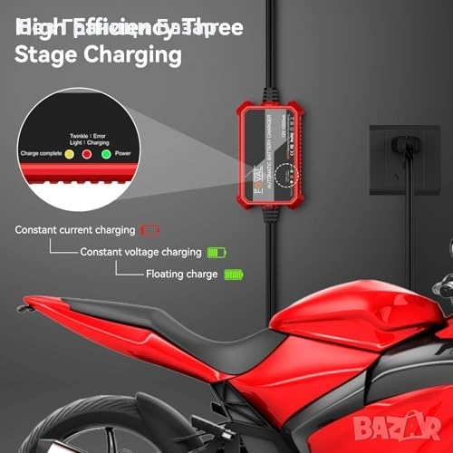 Функции: поддържащо зарядно (maintainer), бавно зареждане (trickle), float режим, десулфататор