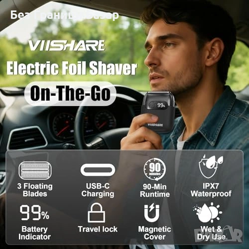 Нова Безжична електрическа самобръсначка 3 глави, 90 мин работа, USB-C