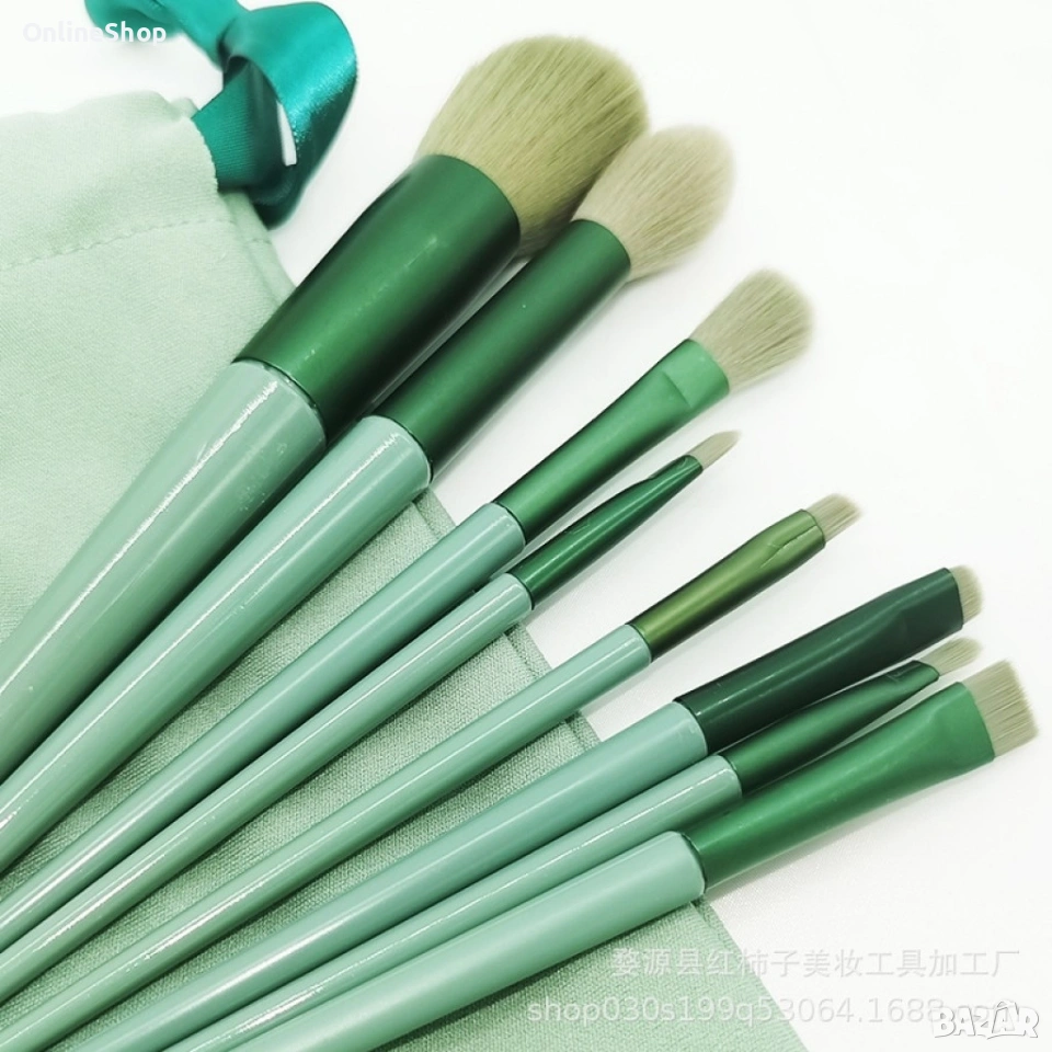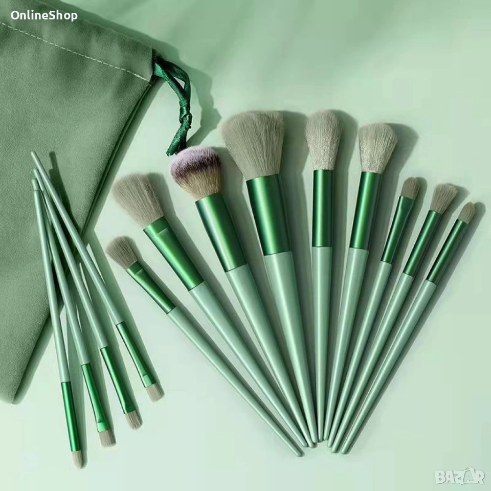 Комплект от 13 многофункционални четки за грим, пластмасови, зелени