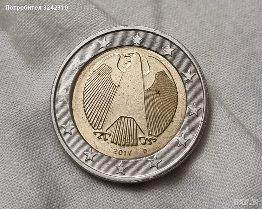 .Предлагам немска монета от 2 евро от 2017 г. с грешка при сечене. Интересен колекционерски артикул за нумизматични ентусиасти. Такива грешки при сечене са рядкост. Моля, вижте снимките за подробности. Разгледайте и другите ми обяви! Приятно разглеждане! Частна продажба, следователно без гаранция или връщане.