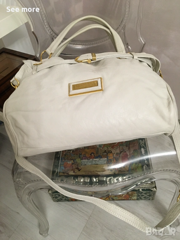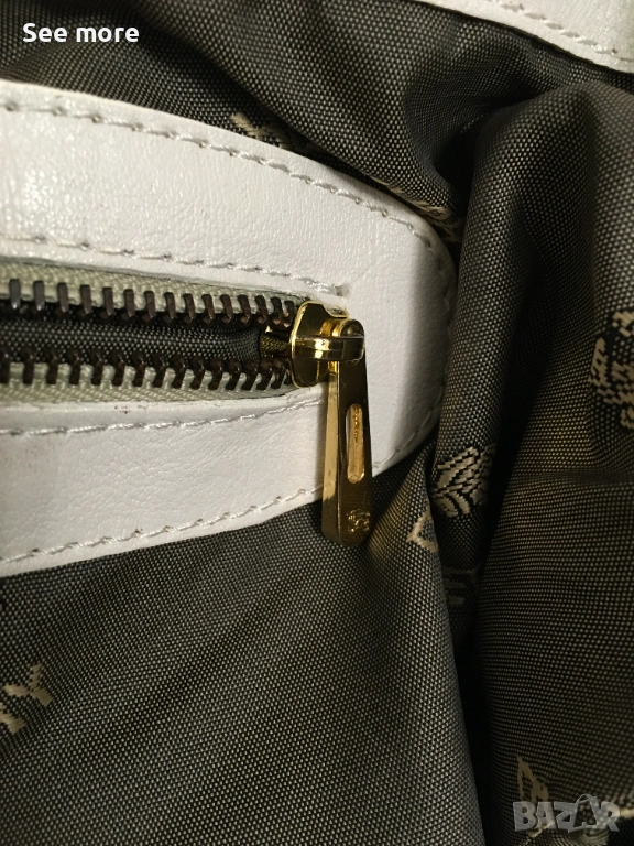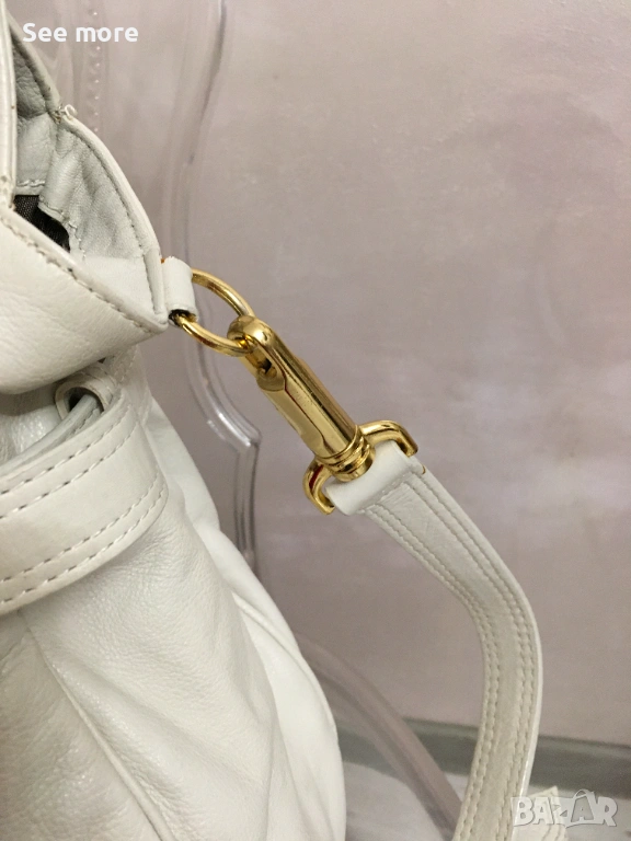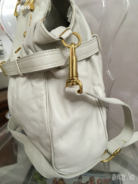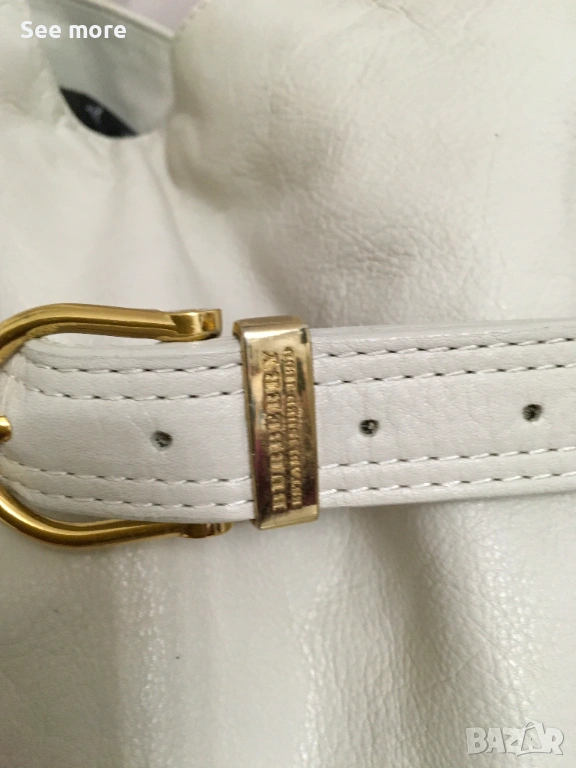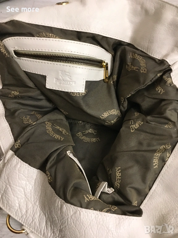 Винтидж чанта от Burberry в бяла естествена кожа за жени.С леки следи от употреба бих казала незабележими! Височина 37 см,ширина 38 см!