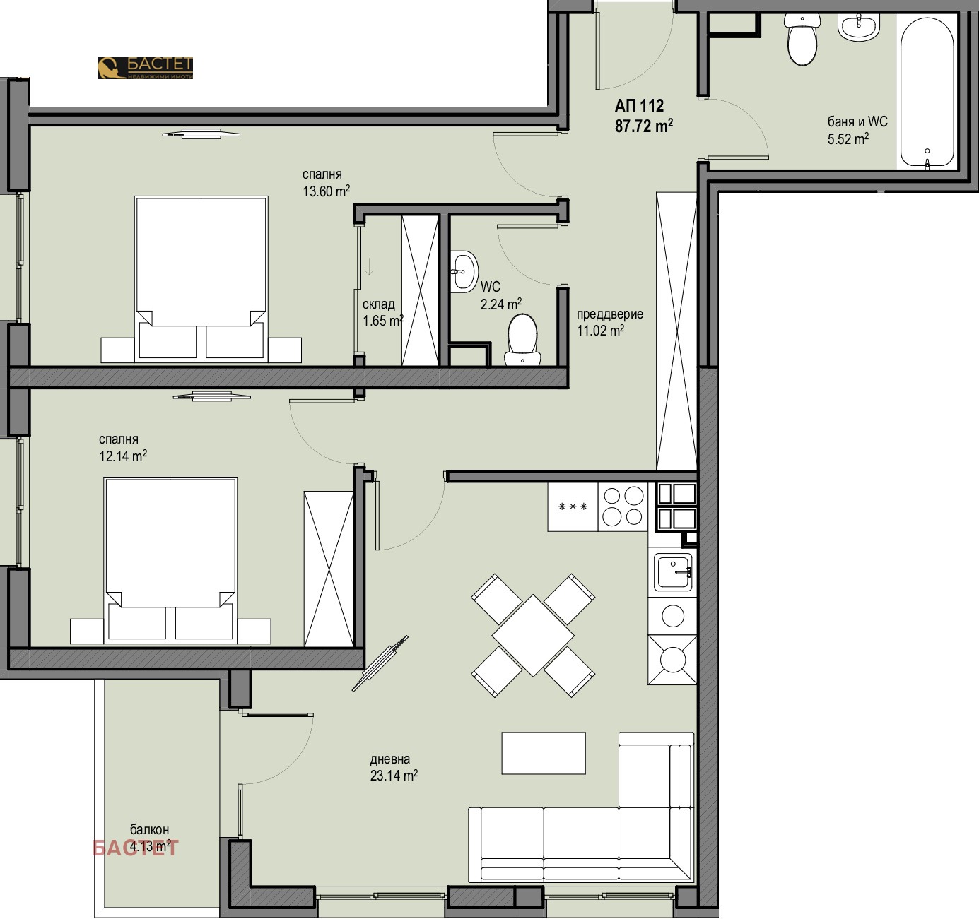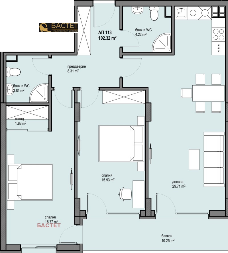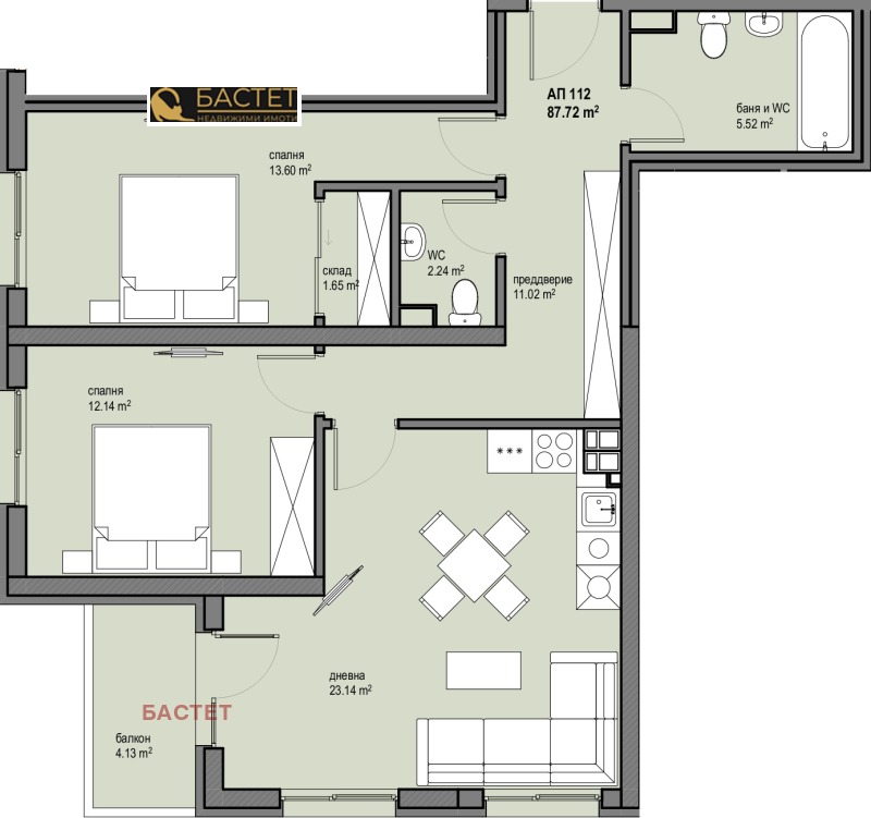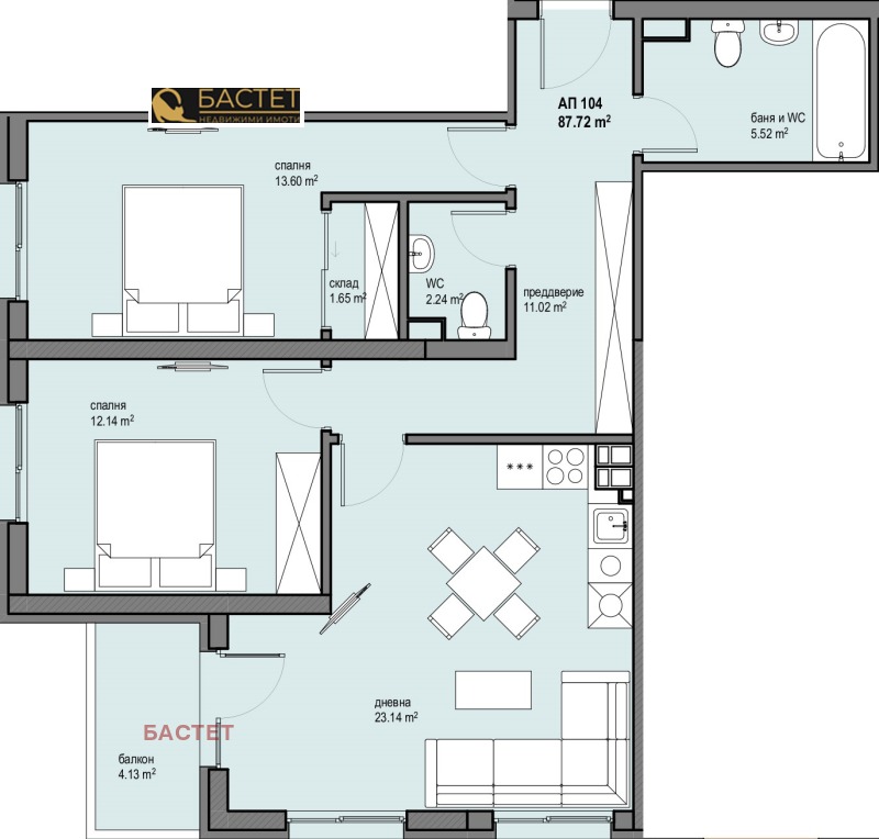 дневна с трапезария и кухненски бокс,