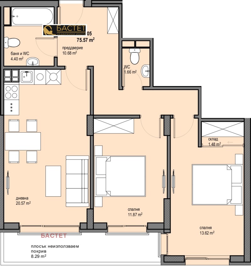 със застроена площ 75.57 кв.м, ет.2