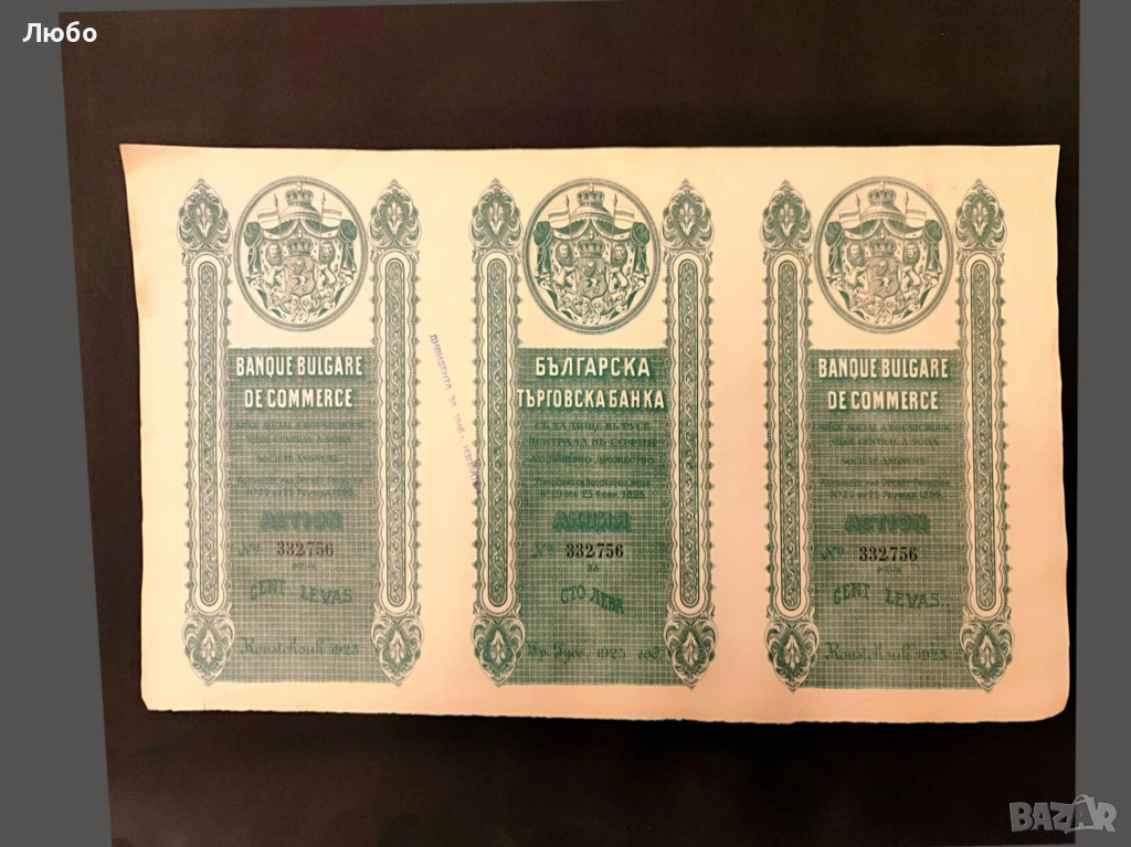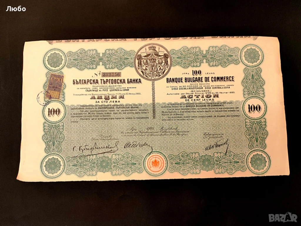 Емитент: Българска търговска банка (Banque Bulgare de Commerce).
