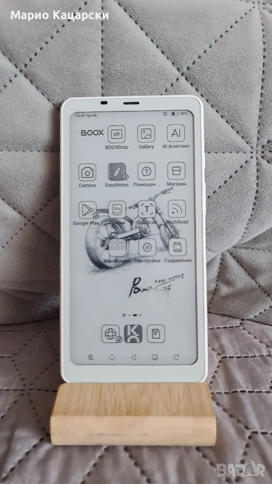 Продавам четец Onyx Boox Palma – компактен и лек e-ink Android четец с формата на смартфон, удобен за четене с една ръка. Подходящ е за електронни книги, PDF-и, статии и бележки, като щади очите благодарение на e-ink екрана и регулируемата предна подсветка. Устройството работи с Android и поддържа Google Play, което позволява инсталиране на приложения за четене, облачни услуги и аудиокниги. Отличен избор за хора, които четат в движение и търсят максимална мобилност без разсейващ екран.