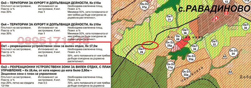 Парцелът е във вилна зона и е от група 'Ов' според Общия утройствен план: