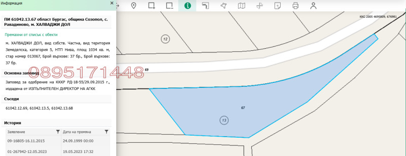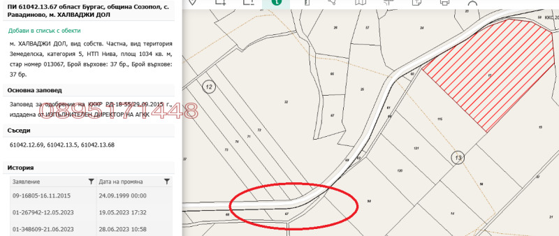 ПИ 61042.13.67 област Бургас, община Созопол, с. Равадиново, м. ХАЛВАДЖИ дол