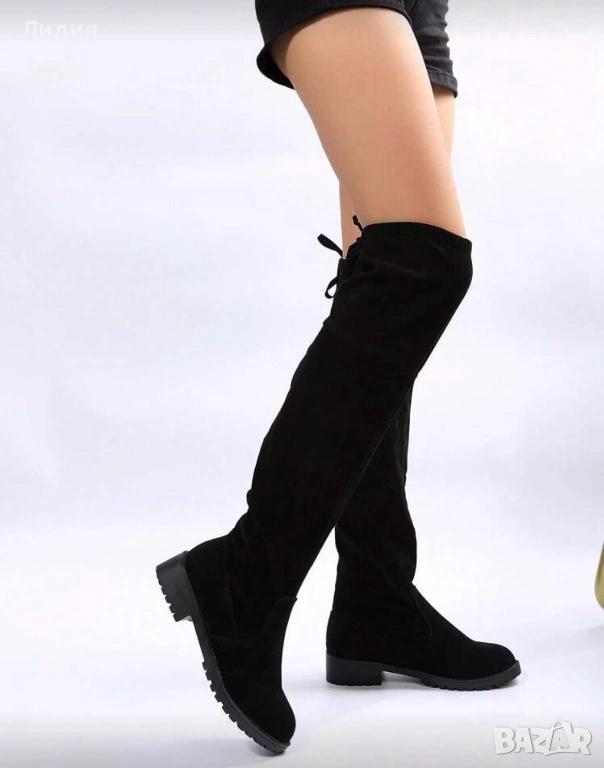 Елегантни високи черни ботуши от изкуствен велур → Обява 53375908
