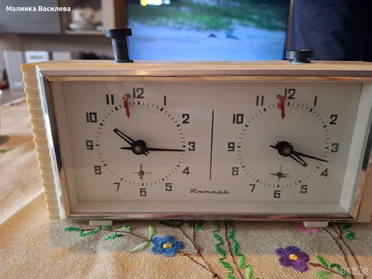 Съветски винтидж часовник ьа игра на шах Янтар