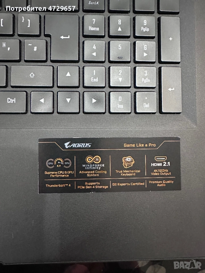 Продавам геймърски лаптоп AORUS 17G KD – i7 / RTX 3060 / 16GB RAM