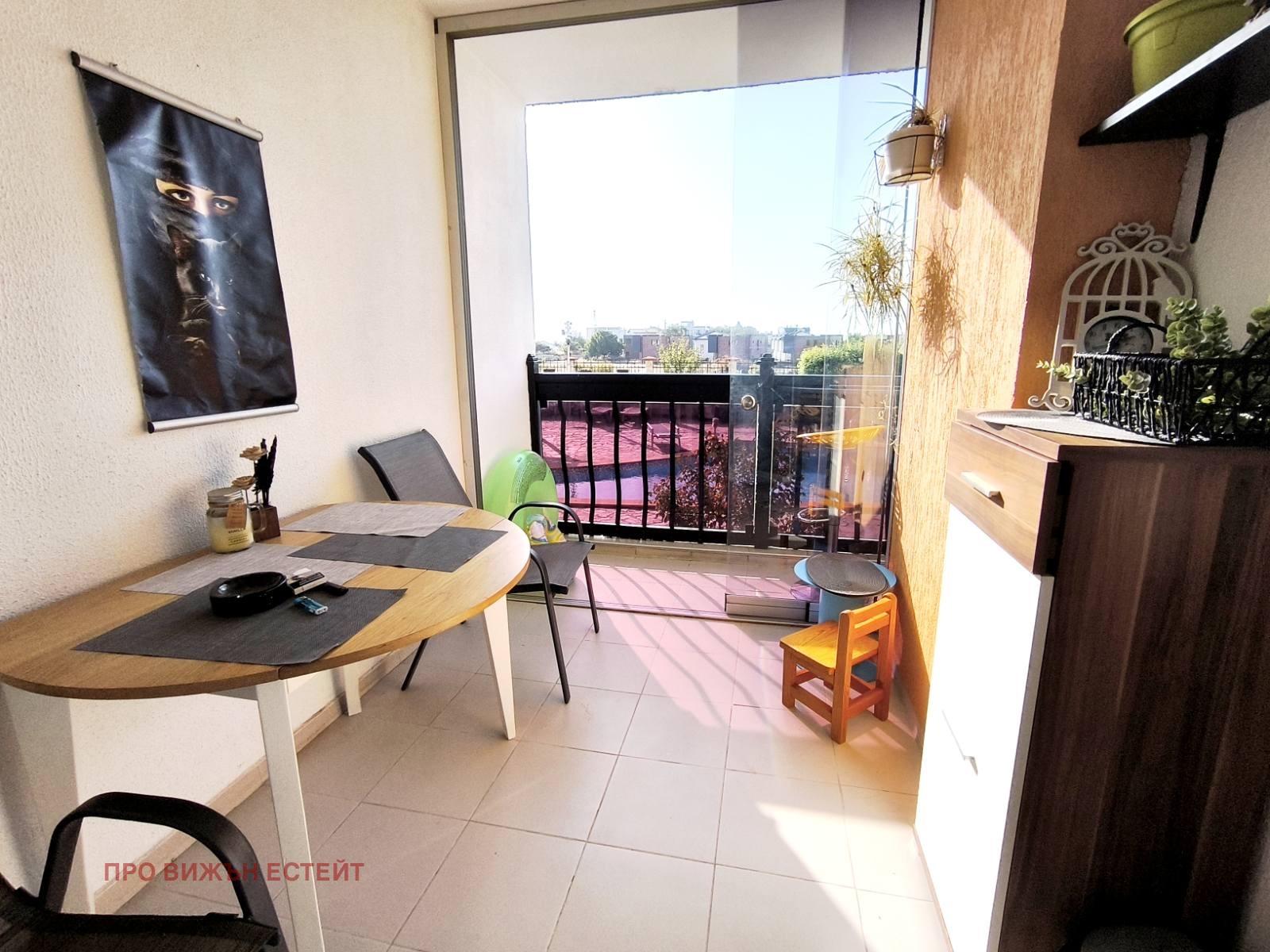 Агенция ПРО ВИЖЪН ви предлага прекрасен тристаен апартамент в уютен затворен комплекс в квартал Виница. Жилището се отличава с просторни и слънчеви помещения и южна тераса с гледка към басейна! На площ от 116кв. м. са разположени: входно антре, прекрасна дневна с кухненска част/35м2/ с излаз на голяма тераса, две спални, тераса, килер, голяма баня с тоалетна. Жилището се продава без обзавеждането! Апартамента се намира в затворен комплекс с контролиран достъп, басейн, беседка, детска площадка с постоянно видеонаблюдение и паркоместа за живущите - а таксата е само 80лв на месец! Жилището е с множество подобрения и се продава необзаведено, при интерес е възможна договорка за наличното обзавеждане и оборудване. При нужда от повече информация и оглед: Павел Павлов - 0879/666207
