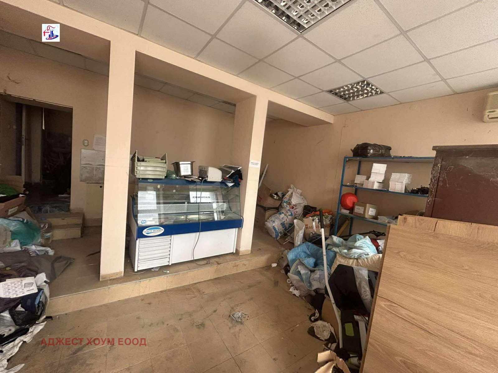~ Първи етаж / ниво партер / - самостоятелен търговски обект със складово помещение, санитарен възел, лице на улица и самостоятелен вход.