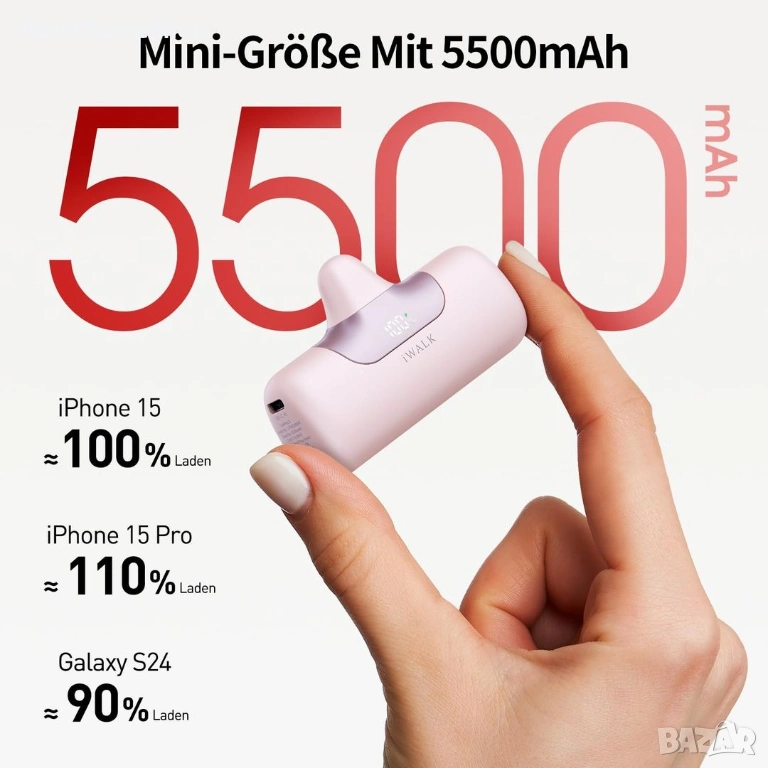 Продавам оригинална преносима батерия iWALK LinkPod 5, компактен модел с директно включване към телефона. Идеална за ежедневна употреба, пътуване и резервно захранване без нужда от кабели.