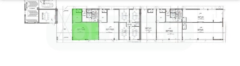 Разположено на партерно ниво с чиста площ от 107 кв.м. и представляващо търговска зала, склад и санитарен възел.