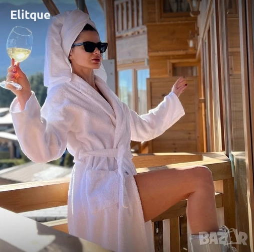 Дамски хотелски халат, класически, удобен, топъл, с връзки, мек, бял