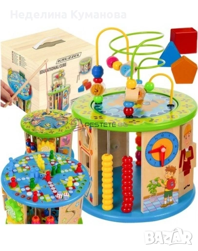 11 в 1 Образователният куб е изработен от естествено дърво и е боядисан с нетоксични бои