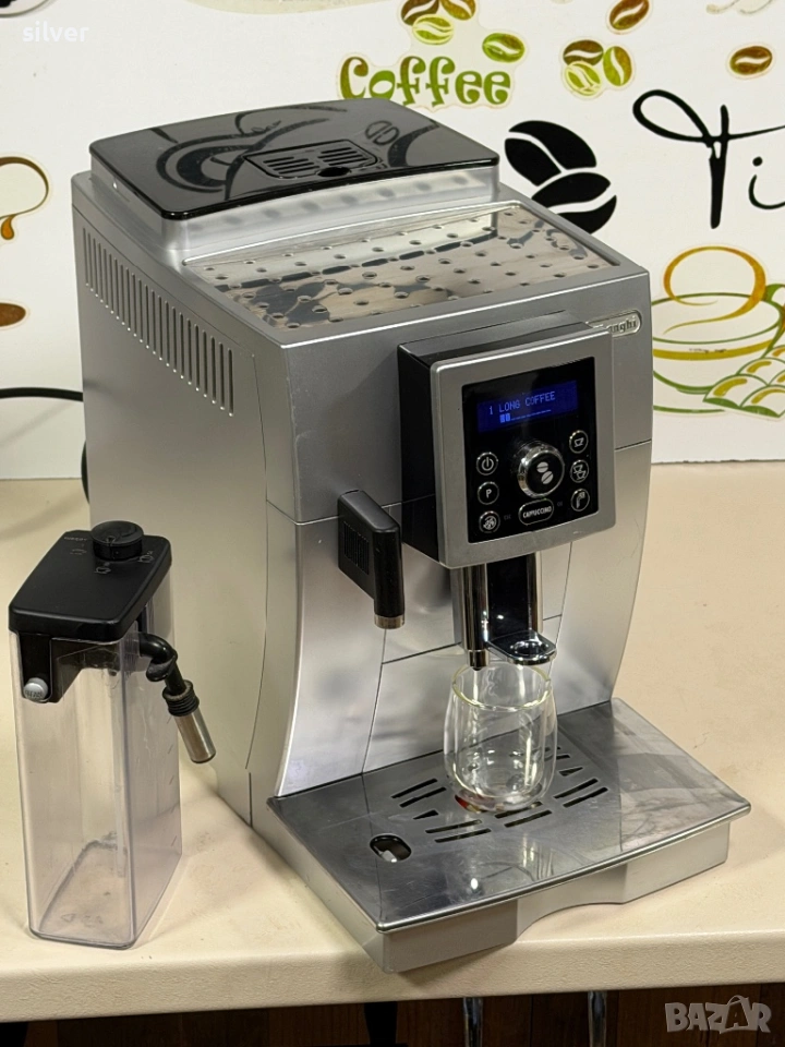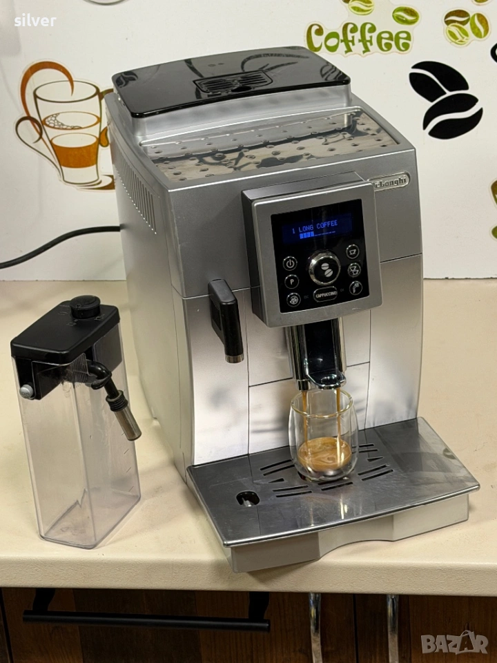 Продавам кафе автомат, визуалнто му състояние се вижда на снимките работи отлично. Почистена проверена, смазана минала е пълна профилактика готова за употреба. Работи с кафе на зърна и мляно кафе. Има каничка за мляко капучино. Приготвя страхотно кафе Пълна гаранция 1 месец Пътува с опция преглед и тест преди плащане