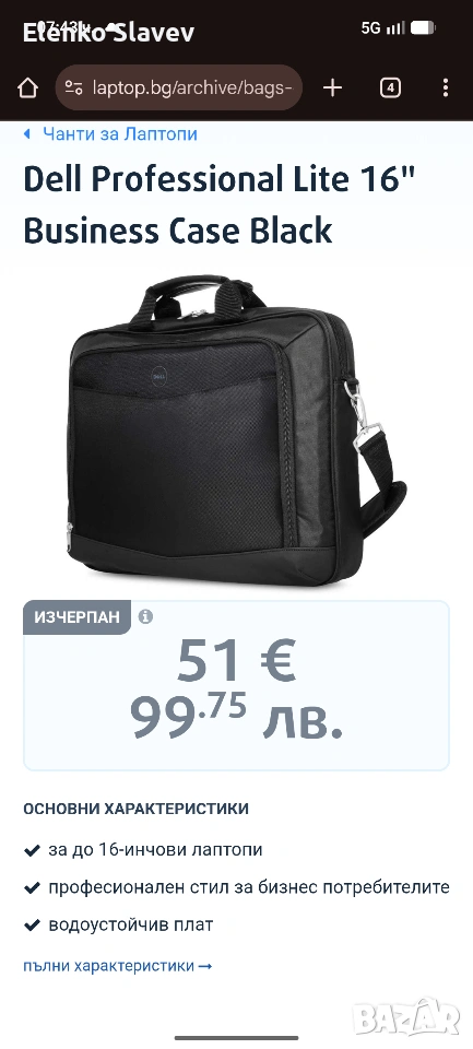 за до 16-инчови лаптопи професионален стил за бизнес потребителите водоустойчив плат Изтънчен професионален стил за бизнес потребителите Добре подплатено, защитно отделение за лаптоп, ергономичен комфорт и изобилие от организационни характеристики Зона за съхранение на аксесоари за визитки, химикалки, кредитни карти и други артикули Отделен раздел за и документите Двойни джобове за бърз достъп до телефон или ключове Голям джоб с цип за паспорт и други документи за пътуване Подплатени дръжки и ергономична презрамка Водоустойчив плат за допълнителна защита. почти като нова е личи си по външния корпус и самозалепващи те ленти с множество джобове за визитни карти, химикали и всякакви други канцеларски материали.