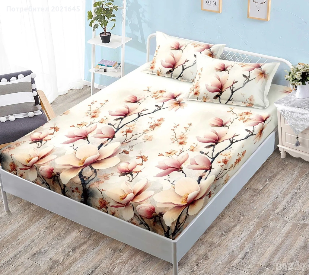 Чаршаф с ластик за голяма спалня и 2 калъфки → Обява 53377159