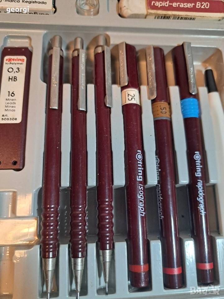 комплект прибори за чертане пергел и рапидографи Rotring HI Tech 33/1 → Обява 53377270