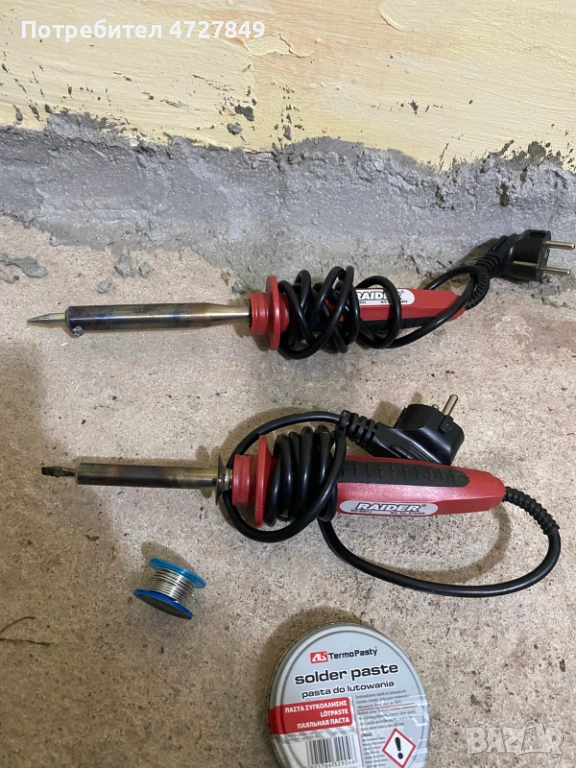 Продавам комплект от два електрически поялника на марката Raider. Инструментите са надеждни и идеални за ремонт на електроника, кабели или за хоби проекти.