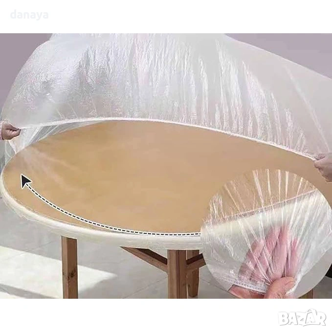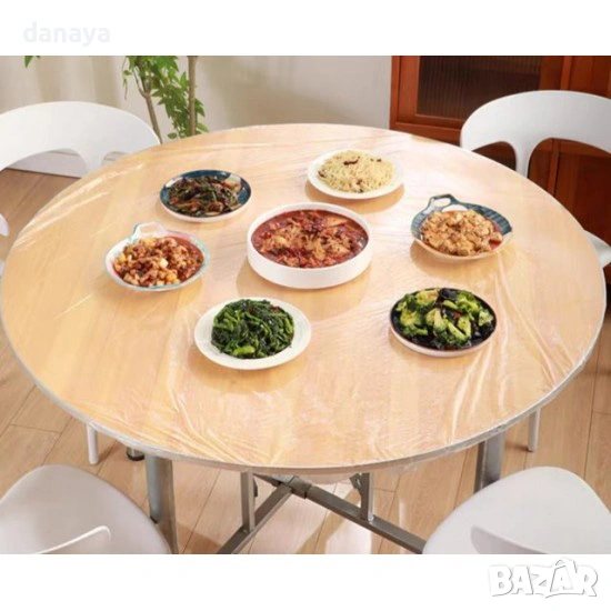 Покривка с ластик за кръгла маса 180 см диаметър, еднократна прозрачна покривка с ластик, защитна покривка за маса – практично и сигурно решение за защита на масата при всякакви поводи. Благодарение на вградения ластик покривката прилепва плътно към плота, не се размества и не се повдига дори при движение, вятър или по-активно използване.