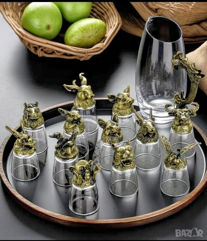 Комплект 13части: Зодиакални чашки с каничка в куфарче → Обява 53377723