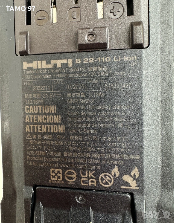 Продавам акумулаторна батерия на Хилти за новата Nuron серия 22V 5.10Ah с индикатор. Имам налични 2 броя батерии, като нови използвани броени пъти. Оригинално полско производство от 07.2025г. внос от Франция. Обявената цена е за една батерия или може двете заедно за 270евро без коментар! Пращаме с преглед и тест с куриерска фирма еконт може и лично предаване за гр. Шумен.