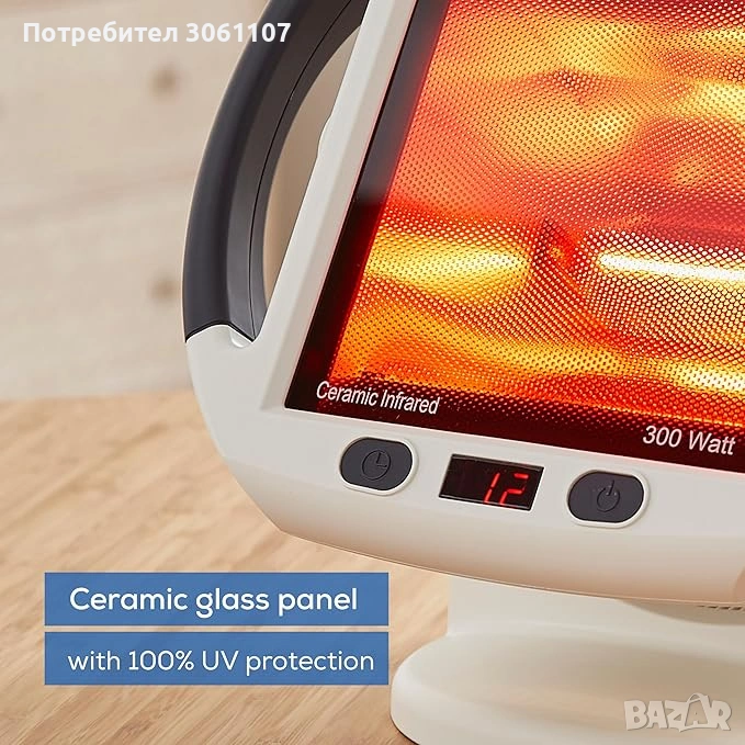 Уредът има висококачествена стъклокерамична плоча, която в комбинация с лампата осигурява интензивно и безопасно инфрачервено лъчение, което е 100% безопасно.