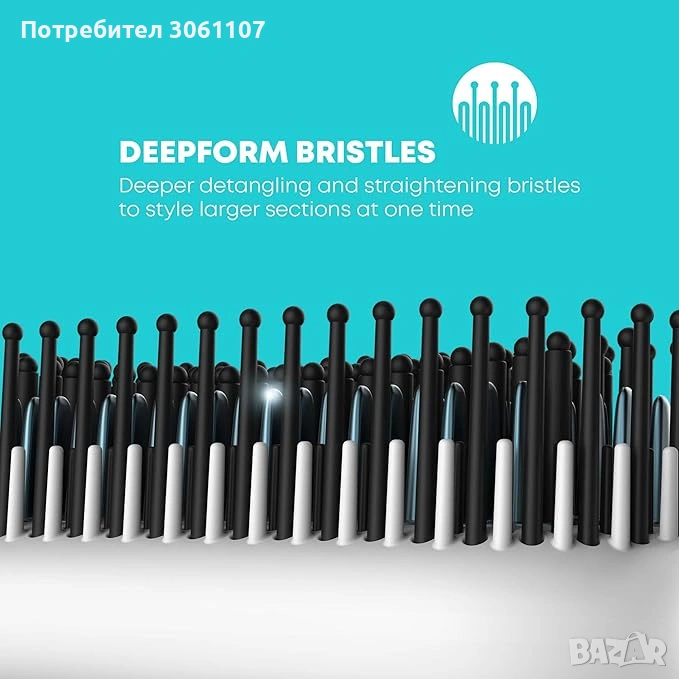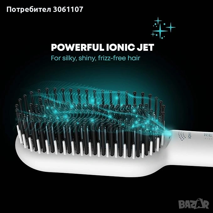 Можете да създадете копринено гладки прически без къдрене, с вградената йонна и керамична технология в четката. Керамичните влакна гарантират, че можете плавно да плъзнете четката през косата си, за да направите копринено гладки прически, докато мощната йонна струя, директно интегрирана в четката, елиминира накъдрянето по целия път от корена до краищата и.