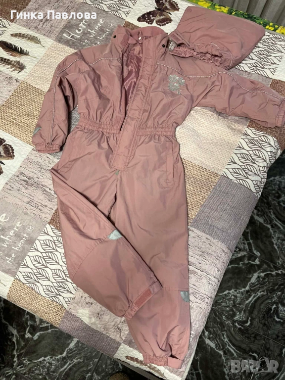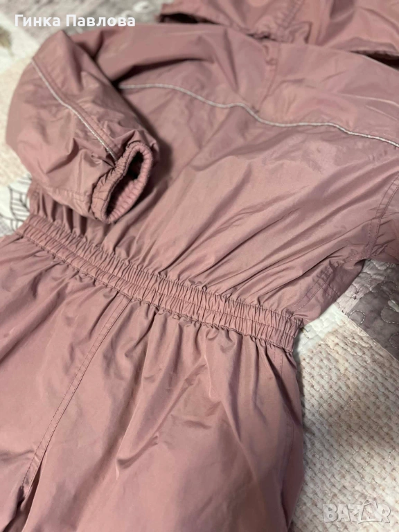 Двоен гащеризон за момиче,вътрешният се маха -полар и горния може за по топло време,люляков цвят, сложен веднъж,но като нов