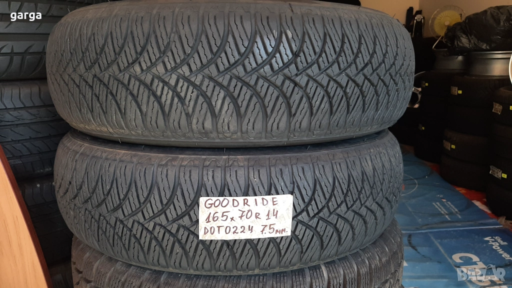 марка - GOODRIDE 165X70R14 DOT 0224 грайфер 7.5 мм. 2 броя цена/брой 25 евро.