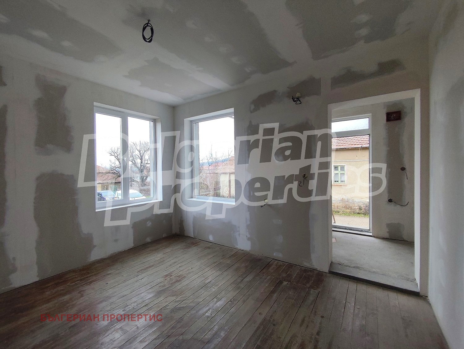 Жилищната сграда е с площ от около 58 кв.м на етаж и е преминала през сериозен етап на обновяване, като са извършени множество ключови ремонтни дейности. Изграден е външен дренаж за хидроизолация, първият етаж е прокопан и подготвен със замазка, поставена е вътрешна изолация с гипсокартон, както и изцяло нови ВиК, електрическа и отоплителна инсталации. Подготвени са две бани с тоалетни, монтирана е PVC дограма, като на първия етаж са добавени и външни щори. Покривът на къщата е основно ремонтиран, а този на стопанската постройка частично обновен.