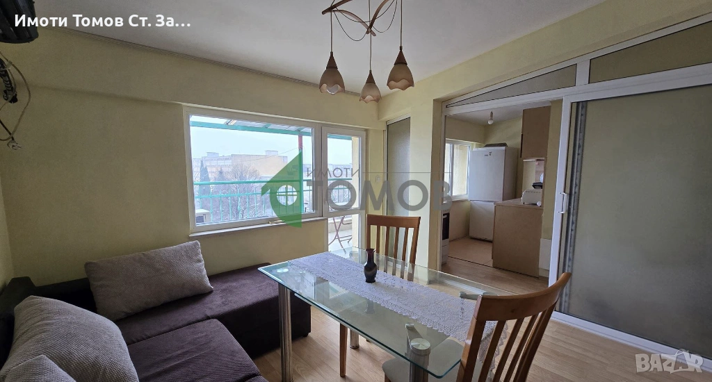Имоти Томов Стара Загора представя на Вашето внимание уютен и светъл двустаен апартамент под наем в кв. Казански, с площ от 60 кв. м. Имотът се намира на пети последен етаж в добре поддържана, новопостроена, тухлена сграда с контрол на достъпа, без асансьор.