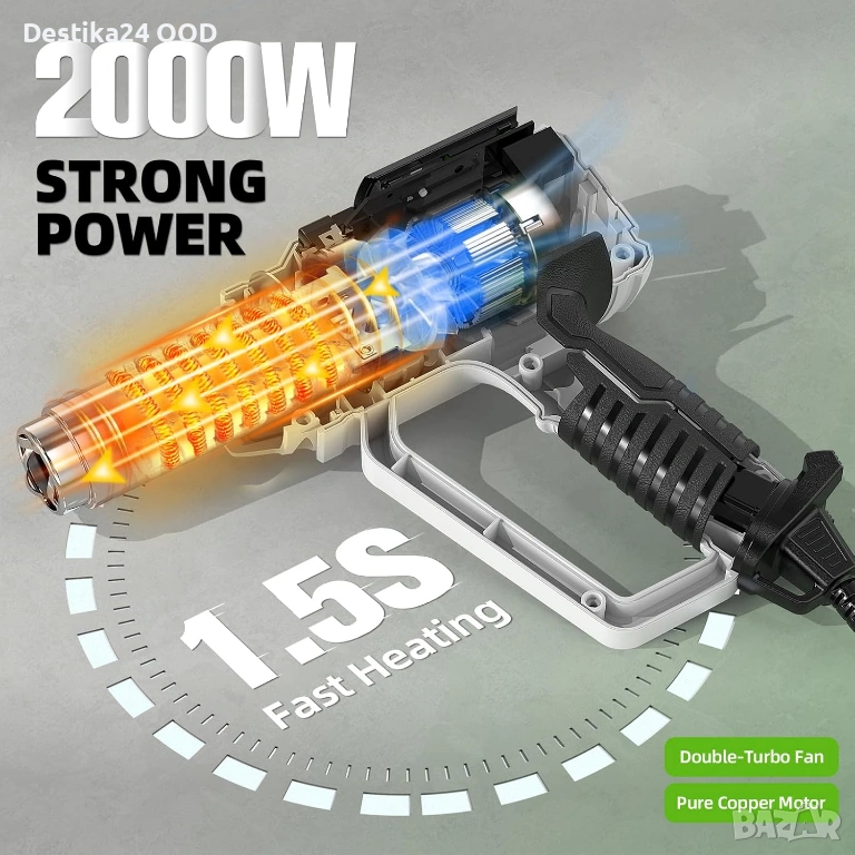 пистолет за горещ въздух, heat gun 2000W, пистолет за сваляне на боя, термо пистолет, DIY инструменти, професионален heat gun, термо въздух инструмент