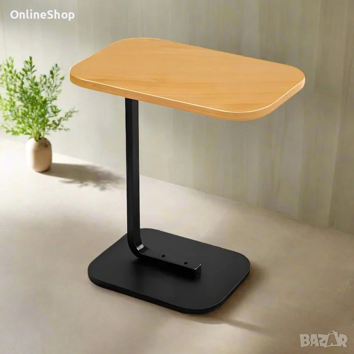 С устойчива метална рамка и висококачествен плот от мебелна плоскост, масата добавя нотка изтънченост и комфорт към вашето пространство, като е подходяща за всекидневна, спалня или офис. Благодарение на интелигентната си С-образна форма, тя може лесно да се плъзне под дивана или фотьойла, спестявайки място и осигурявайки бърз достъп до напитки, закуски, книги или лаптоп.