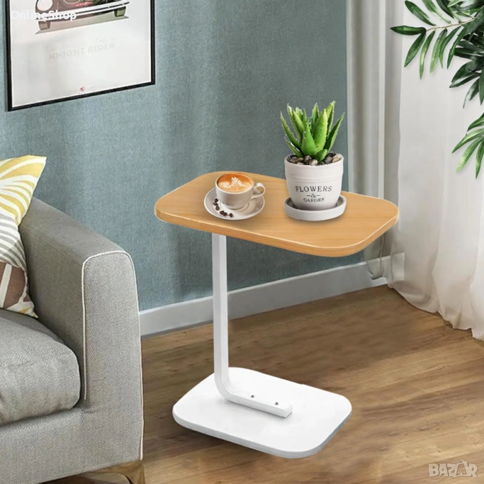С устойчива метална рамка и висококачествен плот от мебелна плоскост, масата добавя нотка изтънченост и комфорт към вашето пространство, като е подходяща за всекидневна, спалня или офис. Благодарение на интелигентната си С-образна форма, тя може лесно да се плъзне под дивана или фотьойла, спестявайки място и осигурявайки бърз достъп до напитки, закуски, книги или лаптоп.