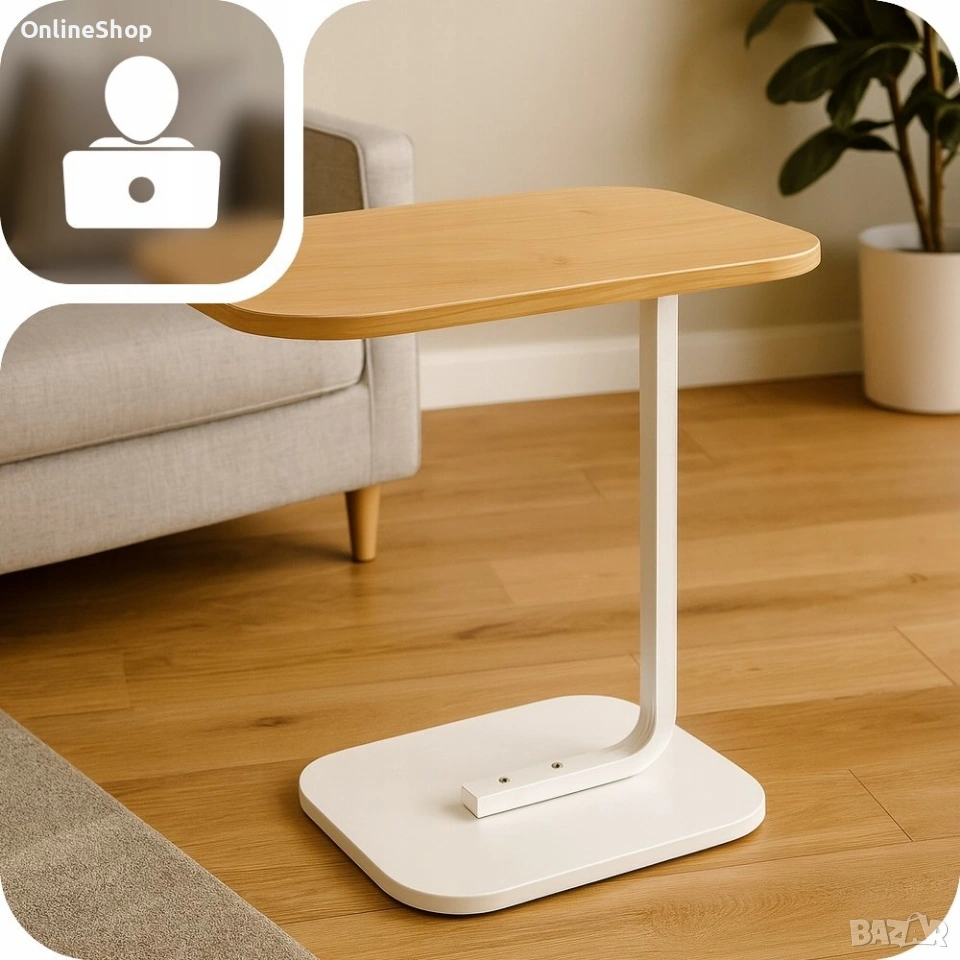 Модерна холна маса VarioShop®, С-образна с метална рамка и ПДЧ плот, мултифункционална, за диван, офис или спалня, 40x30x60 см