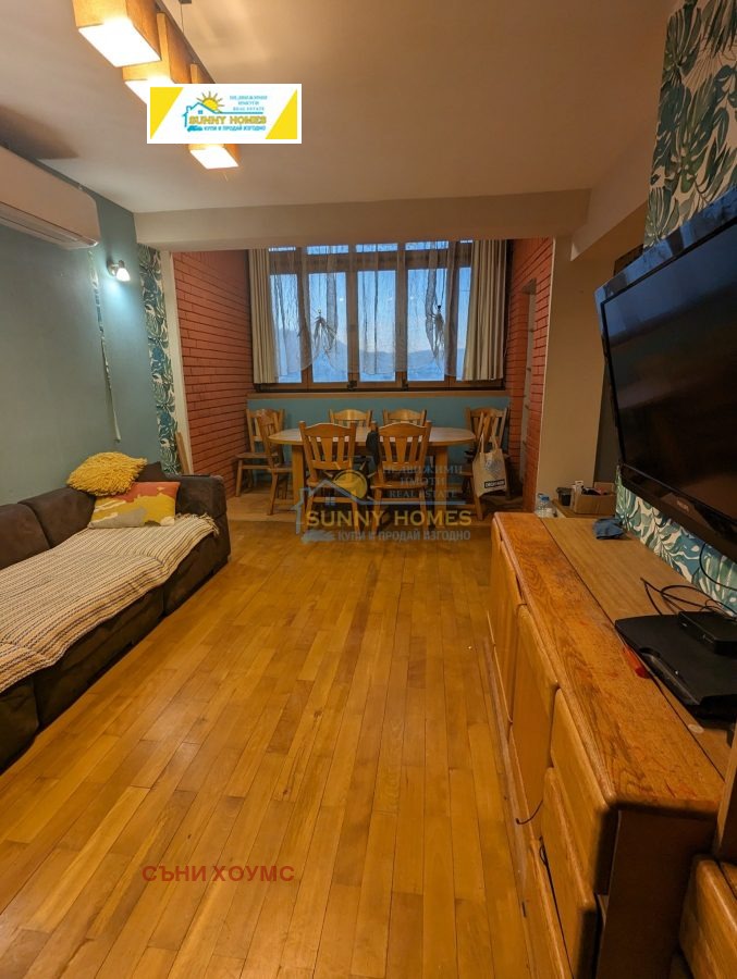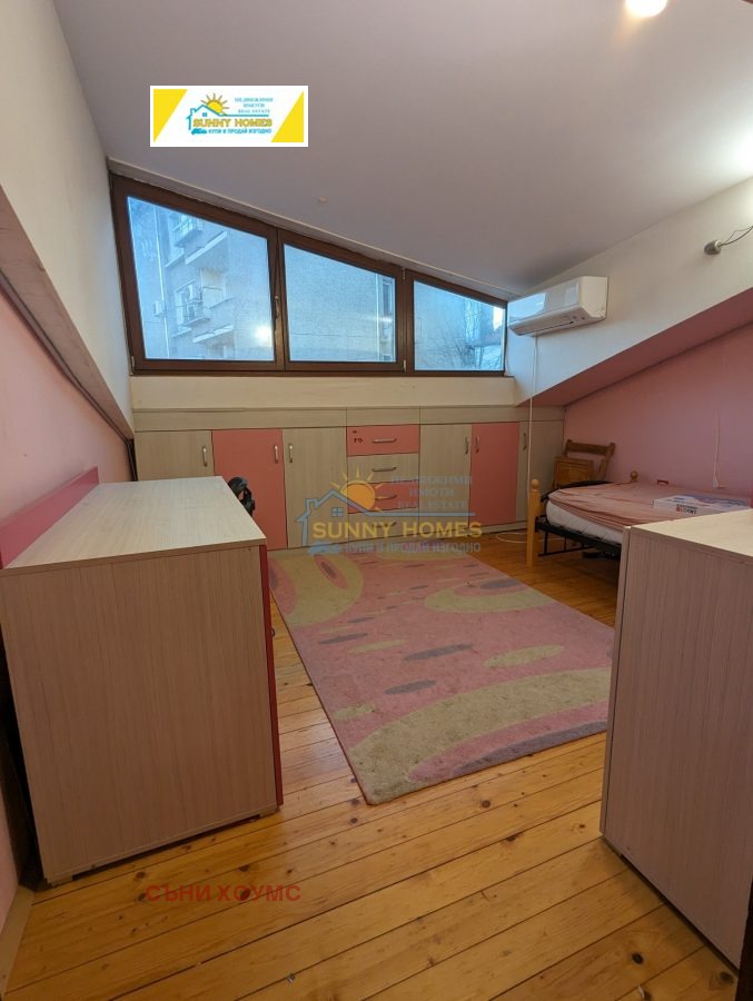 мезонет; Агенция за недвижими имоти SUNNY HOMES предлага на Вашето внимание обзаведен мезонет в идеалния център на гр. Велико Търново. Разположен е на четвърти и пети последен етаж и е с предимно южно, западно и северно изложение. Общата му застроена площ е 120 кв. м. Първо ниво се състои се от входно антре, просторна дневна зона, включваща хол и кухненски кът, както и баня с тоалетна. Вътрешни стълби водят до второ ниво, където се разположени четири спални, баня, тоалетна и панорамна тераса. Към апартамента има и маза. Предлага се с PVC дограма и подови настилки от дъбов паркет и теракот. Някои от четирите спални на мезонета може да се превърне в офис, място за отдих или дори фитнес. Отоплението във всички помещения е чрез инверторни климатици висок клас. Намира се на тихо, спокойно и същевременно много комуникативно място в идеалния център на града, в близост до големи хранителни магазини, заведения, парк, авгогара, училища, детски градини. Имота предлага идеалната среда за живеене, предоставяйки на всички членове на семейството комфорт и удобства. Това наше предложение Ви дава възможност за инвестиция и развиване на бизнес в идеалния център на гр. Велико Търново.