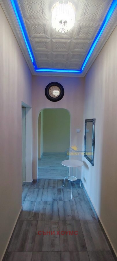 апартамент; Агенция за недвижими имоти SUNNY HOMES предлага на Вашето внимание тристаен обзаведен апартамент след основен ремонт в централната част на гр. Велико Търново. Общата площ на имота е 89,5 кв. м. Чистата жилищна площ е 71,32 кв. м., разпределени между входно антре, две спални, просторна всекидневна с кухненски бокс в един обем, баня и тоалетна заедно и тераса. Отоплението и охлаждането е решено посредством инверторни климатици. Изложение юг/север. Намира се на четвърти последен жилищен етаж в сграда без асансьор, с добре поддържани общи части. Към имота има таванско помещение с площ 11,22 кв. м. и избено помещение с площ 6,9 кв. м. В района има достатъчно на брой места за свободно паркиране.