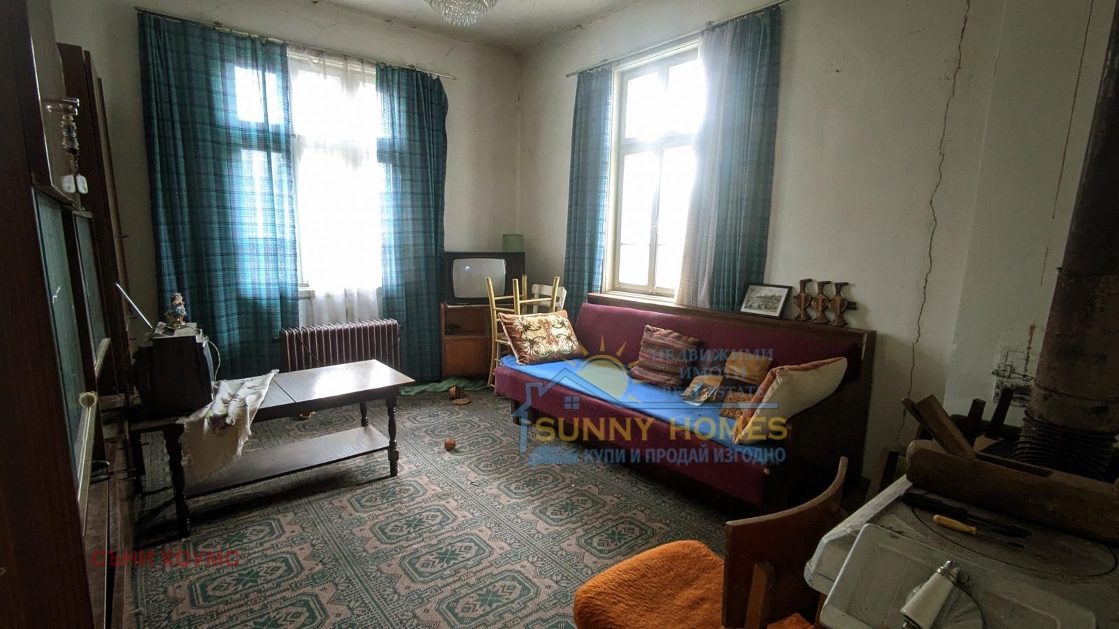 къща; Агенция за недвижими имоти SUNNY HOMES предлага на Вашето внимание голяма двуетажна къщата в с. Балван. Конструкцията и е каменни основи, тухла, гредоред, покрива е в добро състояние. Първи етаж се състои от входно антре, две стаи, баня/тоалетна и избено помещение. Вътрешни вити стълби водят до втория етаж, където има три стаи и помещение, подходящо за обособяване на санитарен възел на етажа. Двора е с площ 2 080 кв.м., равен, с правилна форма. В него има стопански постройки, малка къща, външна тоалетна, чешма и кладенец. Достъпа е по асфалтов път. Къщата се нуждае от ремонт. Разполага с партиди за ток и вода. Село Балван отстои на 18 км. от гр. Велико Търново.