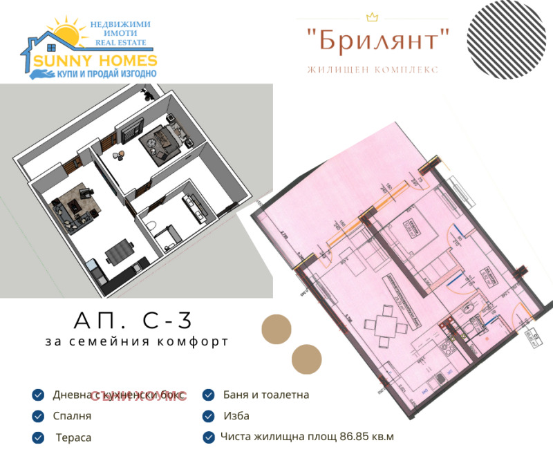 39087 Агенция за недвижими имоти SUNNY HOMES предлага ексклузивно на Вашето внимание двустаен апартамент ново строителство в кв. Бузлуджа.